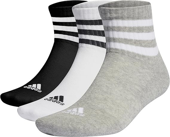 Az Adidas 3-Stripes Cushioned Mid-Cut Socks ideális választás sportoláshoz, edzéshez vagy hétköznapi viselethez. A középmagas kialakítás stabil tartást biztosít a boka körül, miközben a párnázott talprészek extra kényelmet nyújtanak a lábnak hosszabb edzések vagy futás során.