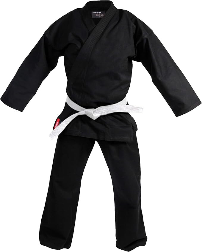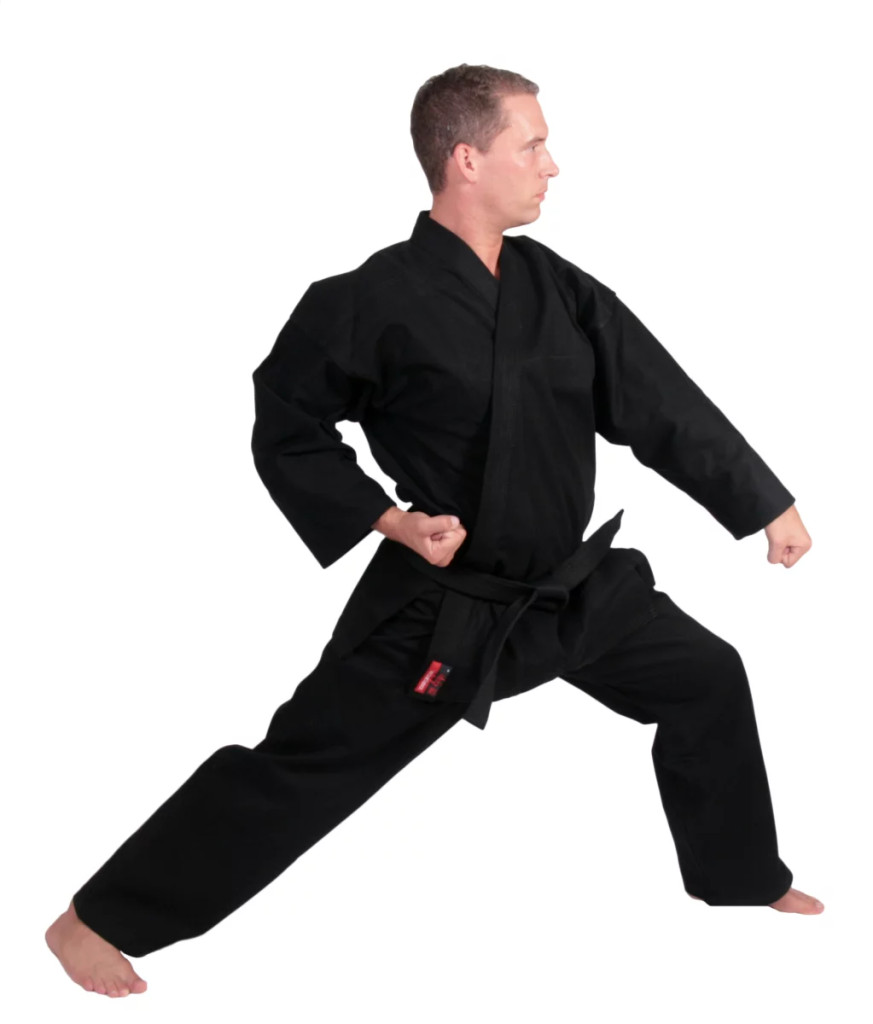 - Nehéz fekete karate ruha (karategi), tökéletes katához, önvédelemhez vagy szabadtéri edzéshez