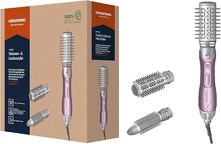 A Grundig Volume & Lockenstyler HS 6220 készülékkel pillanatok alatt professzionális frizurákat varázsolhatsz. A göndör hajformázó ideális társ lesz a formázásban. Magas szintű kényelem a vékonyszálú, normál és vastag szálú haj formázásához és szárításához, valamint egy érzékelhető hideg fokozat a frizura fixálásához. A hajsütővassal nagy és kis fürtök is lehetségesek a 3 formázó tartozéknak köszönhetően. A 3 formázó tartozék kerámia bevonatának köszönhetően különösen hajbarát. Praktikus használatban, 1100 watttal gyönyörű és erőteljes, és látható jele annak, hogy a kis dolgokkal is a nagy vonalat követi. A hajsütővassal nagyon egyszerű a rövid és hosszú haj.