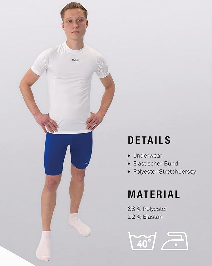 A JAKO Tight Basic 2.0 rugalmas aláöltöző sportnadrág ideális választás edzésekhez, kerékpározáshoz és egyéb aktív sporttevékenységekhez. Testhezálló fazonja kényelmes mozgást biztosít, miközben az elasztikus derékrész stabil illeszkedést nyújt. A gyorsan száradó, funkcionális poliészter anyag segít fenntartani az optimális testhőmérsékletet edzés közben.