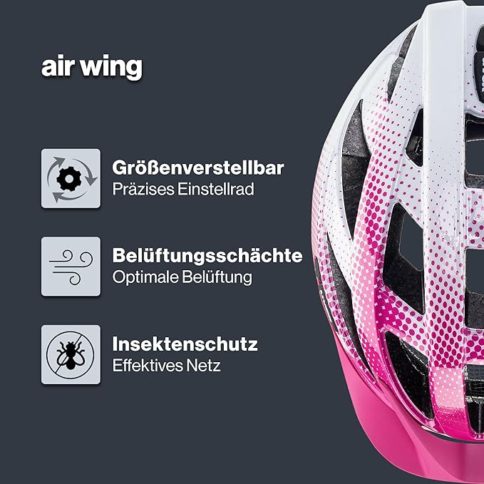 Uvex Air Wing könnyű univerzális kerékpáros sisak – pink-fehér, állítható méret, LED lámpával bővíthető (52–57 cm)
