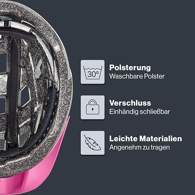 Az egyénileg állítható méretrendszernek köszönhetően gyorsan és pontosan illeszthető különböző fejméretekhez, a fejlett szellőzőrendszer pedig folyamatos légáramlást biztosít, így meleg időben sem melegszik túl a fej. A hátsó rész LED lámpával bővíthető, ami jelentősen növeli a láthatóságot rossz fényviszonyok között.