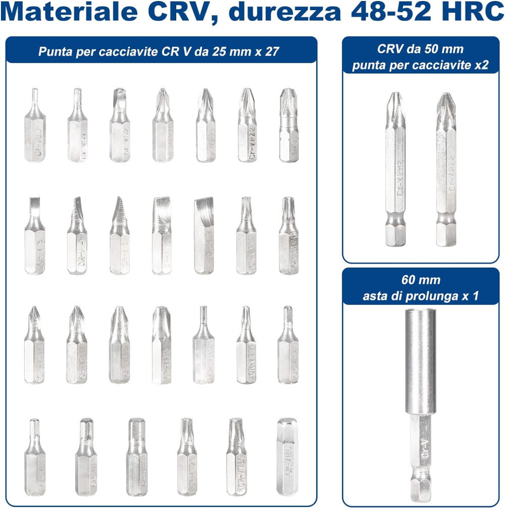 A csavarhúzók a leggyakoribb méretű és típusú fúrószárakat tartalmazzák, és fa, műanyag és könnyűfém csavarok rögzítésére és behajtására készültek, és szükség esetén gyorsan feltekerhetők, hogy készen álljon bármilyen otthoni karbantartási feladatra.