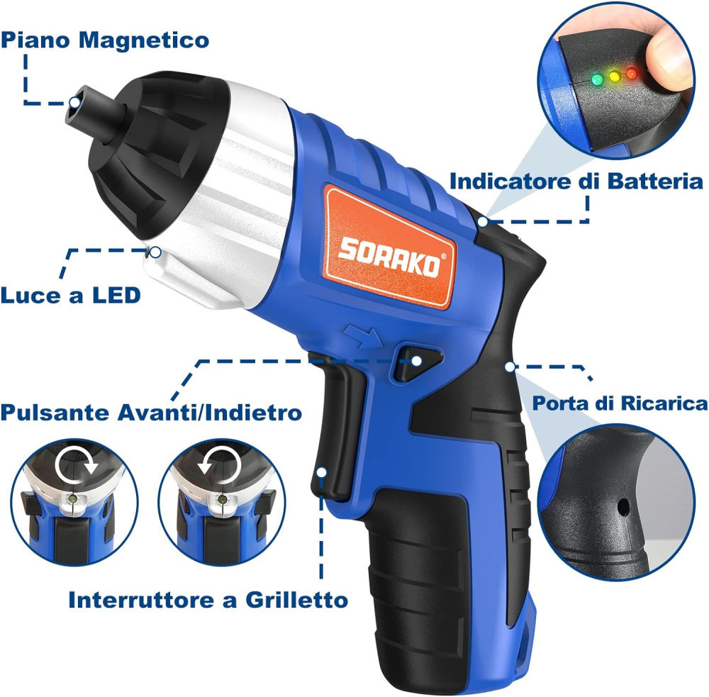 Kényelmes – az elektromos csavarhúzó könnyű, kompakt és könnyű projektekhez vagy nagyobb projektekhez segédeszközként használható. Mivel nincsenek összegabalyodó vagy akadályozó vezetékek, ez az elektromos csavarhúzó optimális mobilitást és manőverezhetőséget biztosít a munka során.