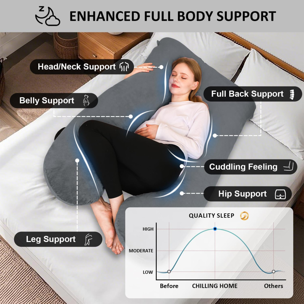 • Mosható huzat: a testpárna formázott és belső, valamint külső rétegén cipzárral ellátott. Ez a terhességi párnahuzat ismételt mosás után sem csomósodik. Így hosszú távú, tiszta kényelemre számíthat, és egyszerűen dobja ki a terhességi párnát mosógépben és szárítógépben a könnyű tisztítás érdekében.