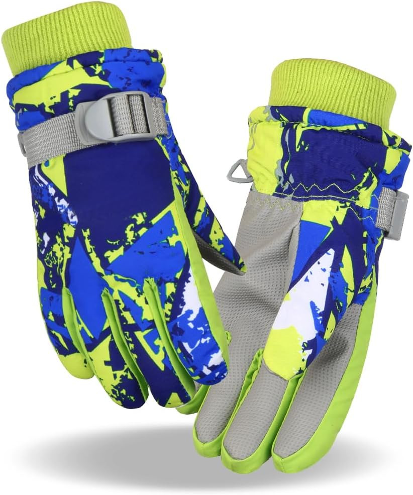 Fengzio Síkesztyűk gyerekeknek, vízálló és szélálló, meleg téli kesztyűk, sportkesztyűk, snowboardhoz (M)(6-8 év)