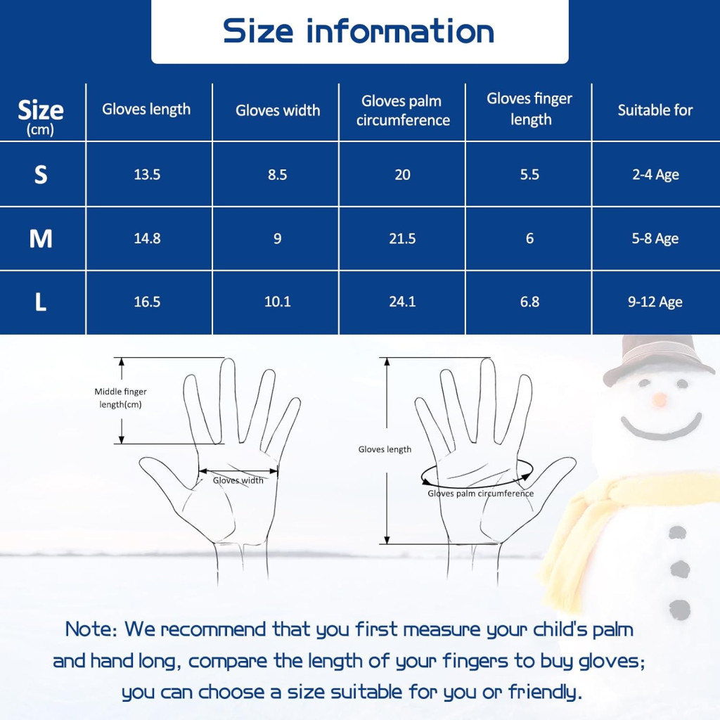 Fengzio Síkesztyűk gyerekeknek, vízálló és szélálló, meleg téli kesztyűk, sportkesztyűk, snowboardhoz (M) méret
